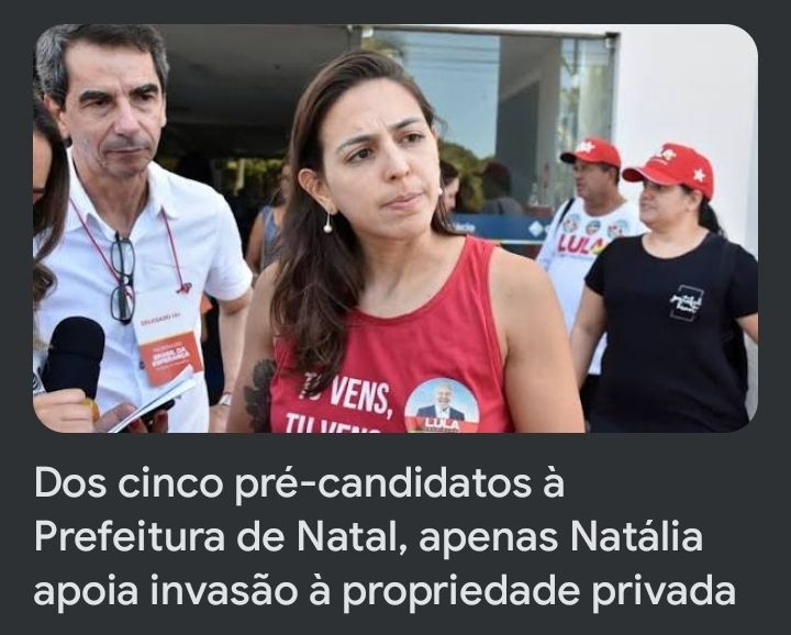 DOS 05 CANDIDATOS, APENAS NATÁLIA APOIA AS INVASÕES Share this: Share on X (Opens in new window) X Share on Facebook (Opens in new window) Facebook Like Loading... Related