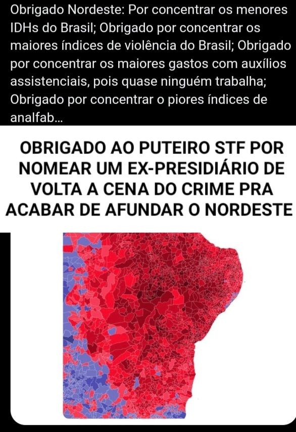 OBRIGADO AO PUTEIRO STF POR NOMEAR UM EX-PRESIDIÁRIO E AFUNDAR O NORDESTE Share this: Share on X (Opens in new window) X Share on Facebook (Opens in new window) Facebook Like Loading... Related