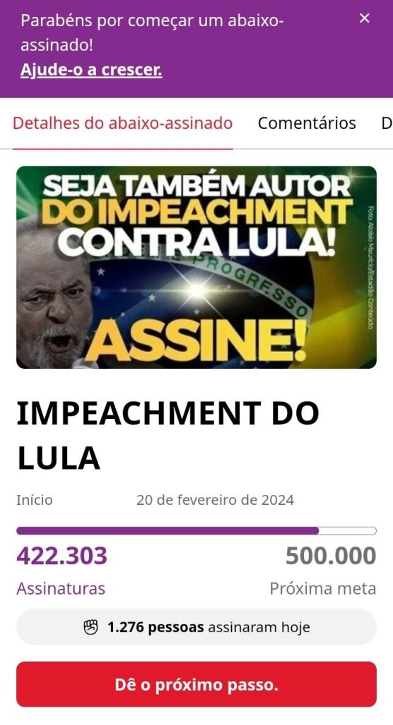ABAIXO-ASSINADO PELO IMPEACHMENT DO IMPOSTOR LULADRÃO Assine e compartilhe ASSINE E COMPARTILHE ESTE ABAIXO-ASSINADO https://chng.it/nzYhqWLr8x Share this: Share on X (Opens in new window) X Share on Facebook (Opens in new window) Facebook Like Loading... Related